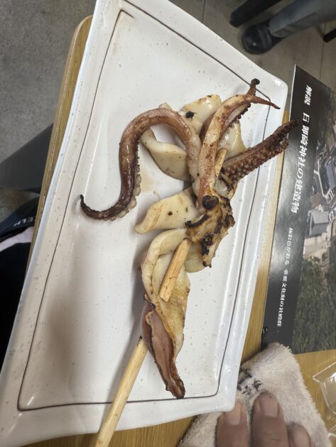 のどぐろ 投稿者:ブログ担当 投稿日:2025年10月3日 カテゴリー:ブログ こんにちは😊 日御碕神社の近くにお土産お食事処があありました! . 外には洗濯バサミにイカが干されてました笑 あまり見ない光景なので面白いですね^_^ . のどぐろが有名なのでお土産もたくさんありました⭕️ のどぐろ12匹で6000円ほど。安い!!! お家に郵送できるのでしてもらいましたが…こんなに食べれるかな?🫠 . イカもその場で焼いてくれてとっても美味しかったです😋 . 日御碕神社 須佐神社