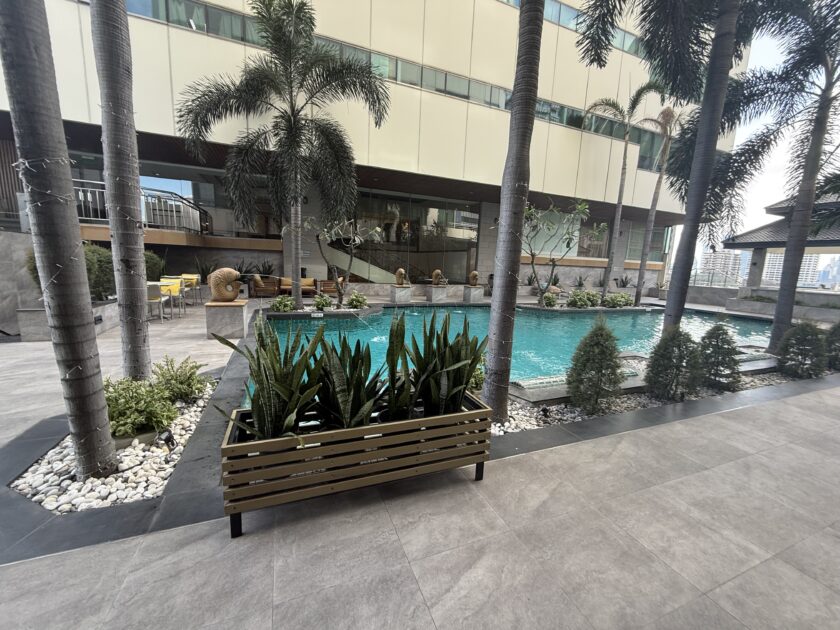 プールサイドにはリクライニングチェアもありタイの暖かい風を浴びながらゆっくりできるスペースもありました!空がとっても綺麗で気持ちよかったです